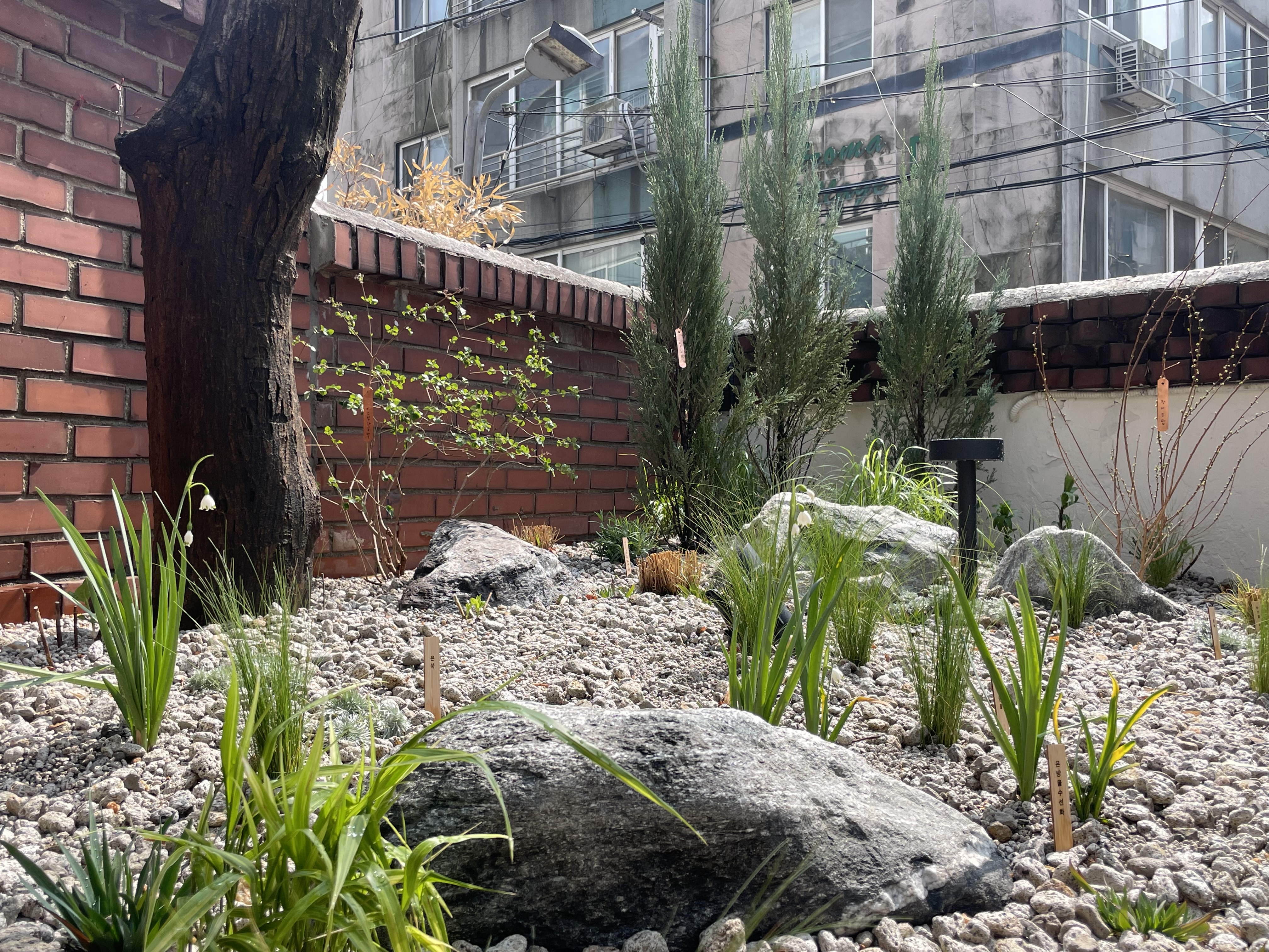 위치 : 서울특별시 용산구 한강대로96길 27조성 면적 : 9.5m2 (기존 화단 재조성)
